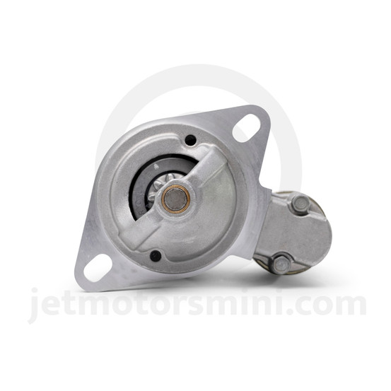 Specially converted Hitachi starter for 107 tooth pre-Verto flywheel. Replaces the clunky inertia starter. Features on board solenoid, and has a thicker mounting flange that avoids a weak point in other gear reduction starters, also has 3rd bearing support to eliminate flexing when engaged. Twice as powerful so they run faster and start the engine regardless of temperature or compression. Draws about half the current of the original starter putting less strain on the battery and electrical system.