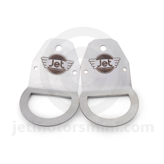 JET Motors custom designed rear tie down / tow hook. Stainless Steel very strong tow eye. With oversized opening to accept larger straps and hooks. Bolts to the underside of the rear subframe using the existing hole, requires drilling 2 small holes in the underside section of the subframe; use one or two per car. Sold each.